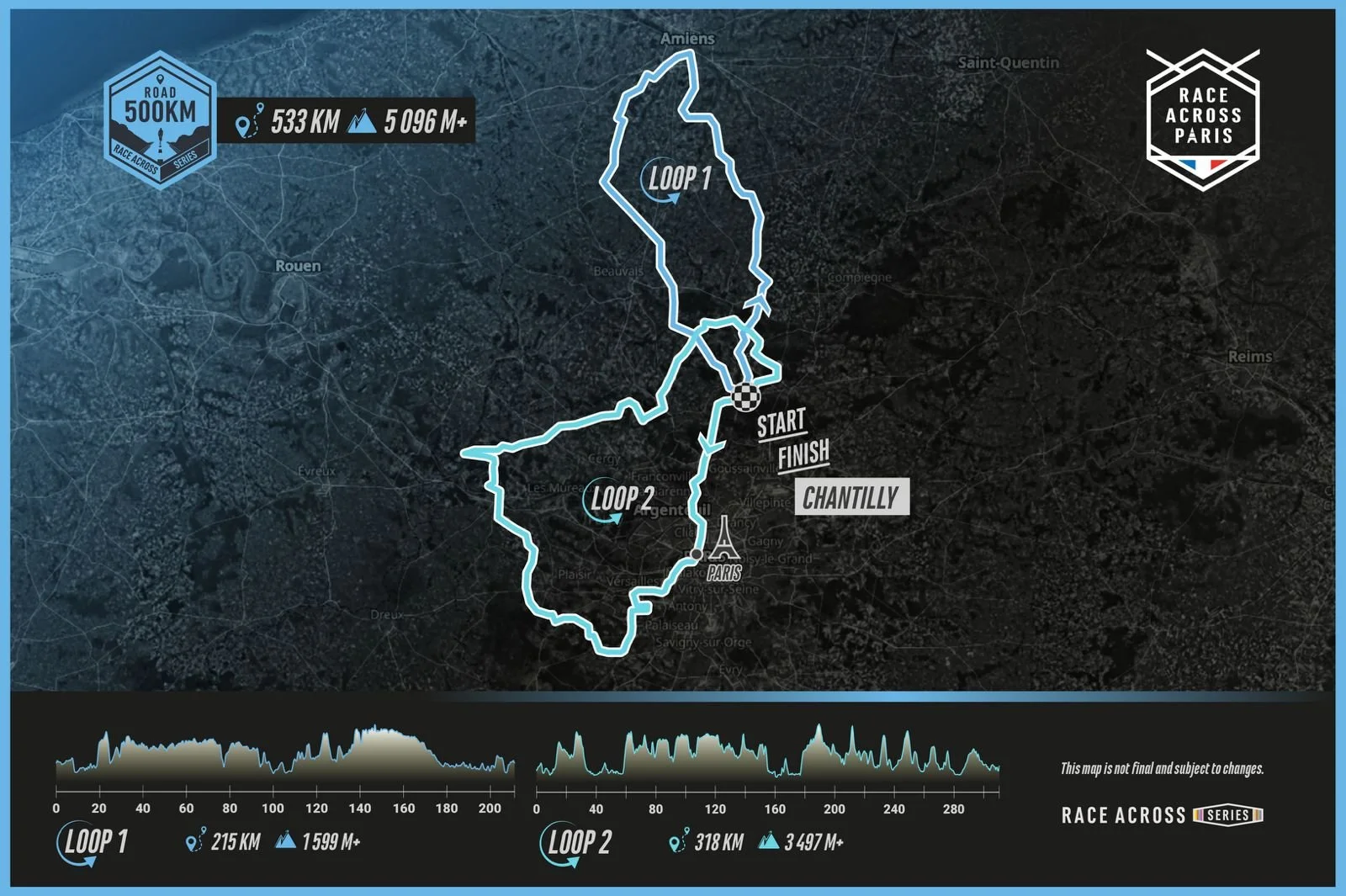 Sur la RACE ACROSS PARIS, les tracés forment des boucles autour d’une base de vie unique.